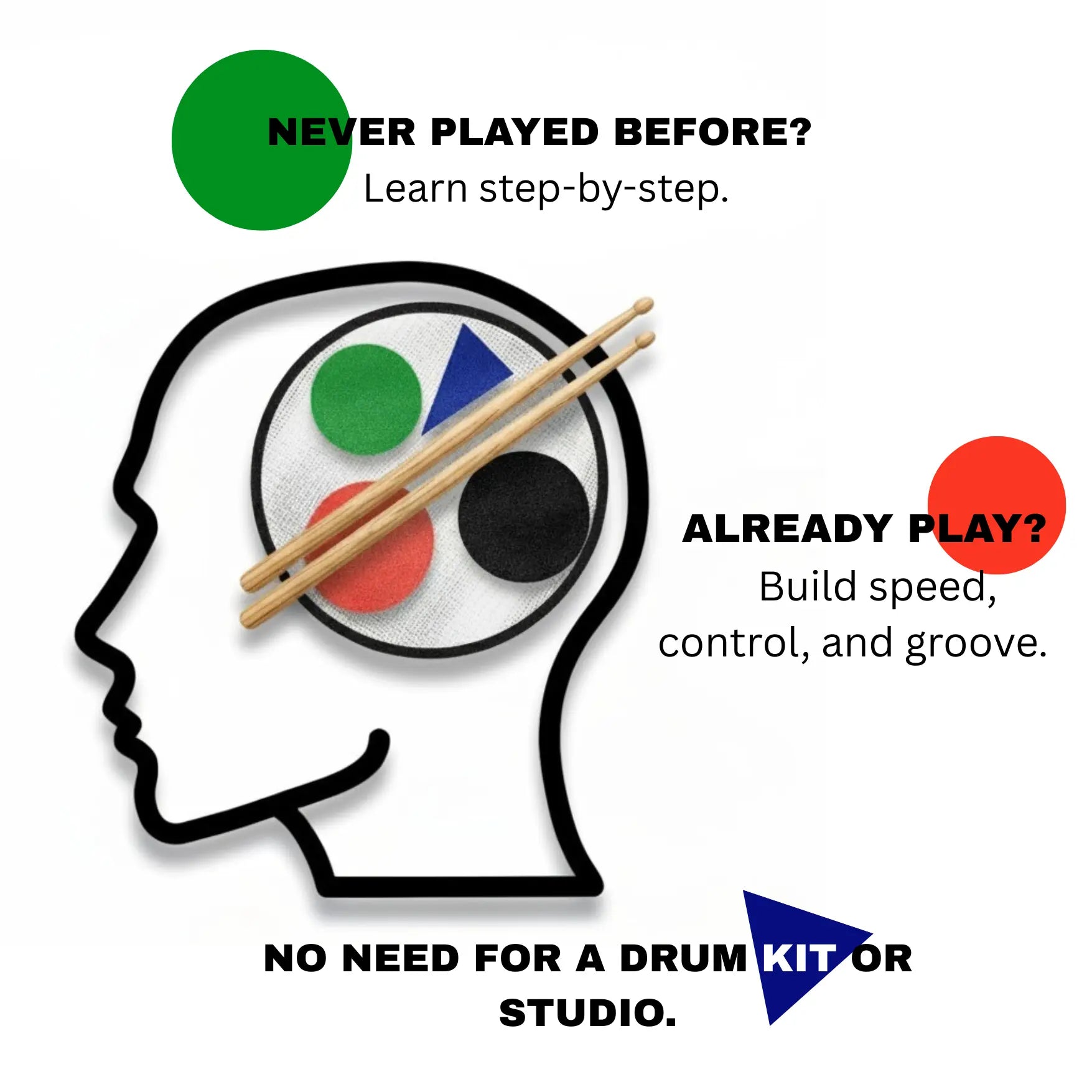 "You can practice anywhere without a drum set — and unlike other pads, each section sounds and feels different, just like real drums. The skills you build here transfer straight to a real kit."
